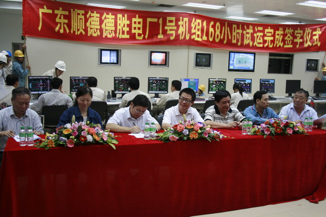 德勝項目1號機組于9月23日完成國家電力建設規(guī)范要求的各項試驗項目,進入168小時試運行考核。考核期間,廣東省順德德勝電廠1號機組試運指揮部對機組進行檢查驗收,機組運行參數(shù)、相關(guān)系統(tǒng)、機爐協(xié)調(diào)控制等均達到和超過設計考核要求,主機振動指標優(yōu)良,各項經(jīng)濟、技術(shù)指標優(yōu)良。9月30日16時,廣東省順德德勝電廠2×300MW工程1號機組正式移交試生產(chǎn)。